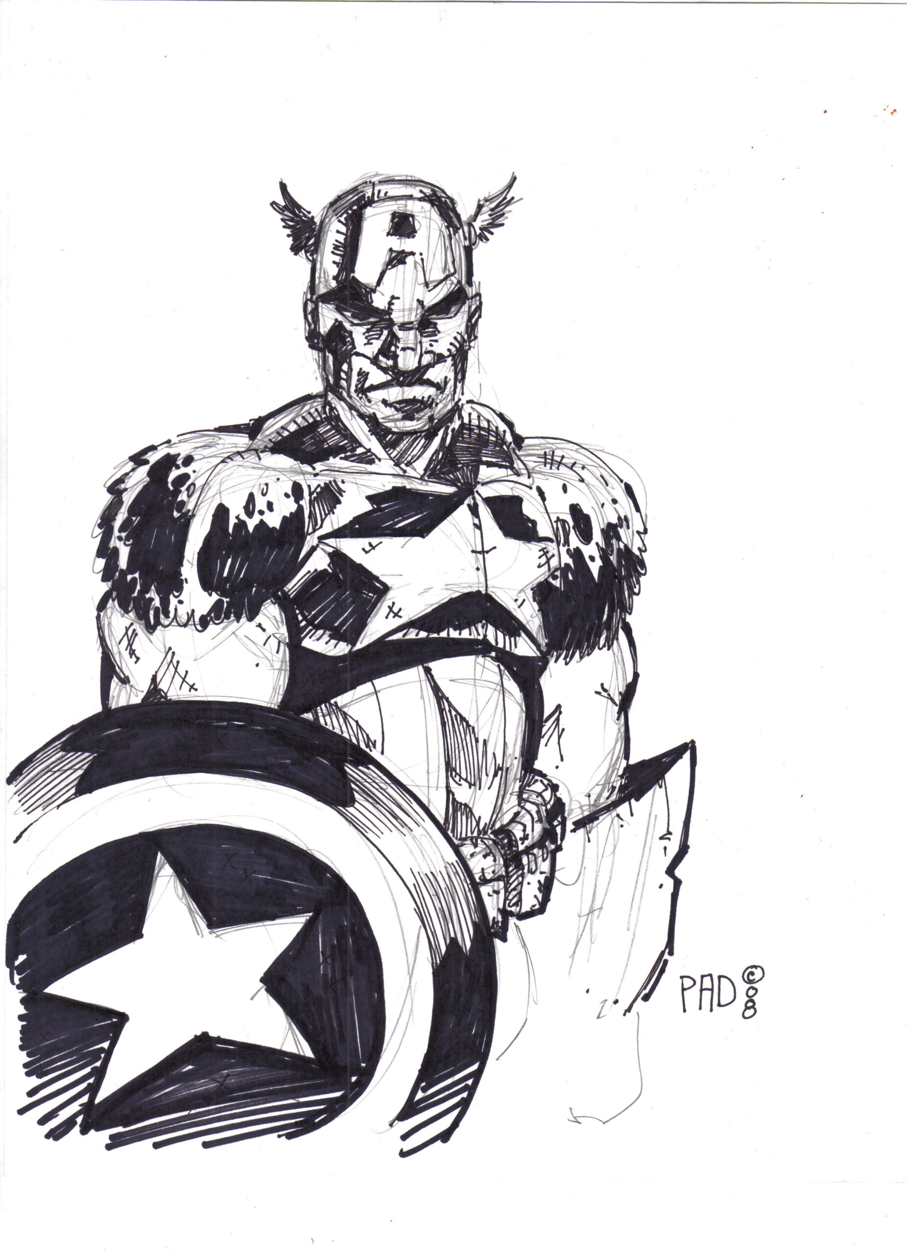 Captain America Black and White Sharpie Sketch