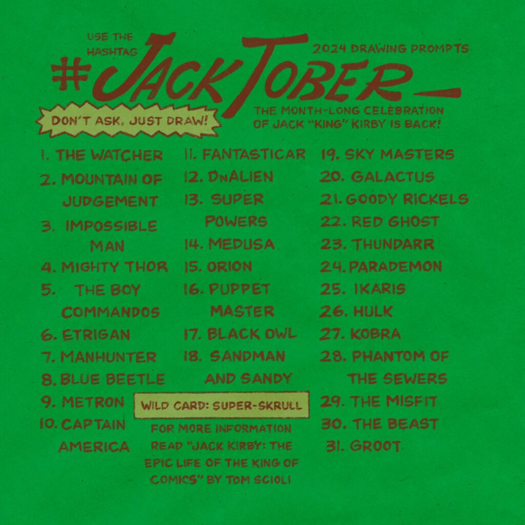 JACKTOBER 2024 Drawing Prompts – The Jack Kirby Tribute Sketchbook Challenge